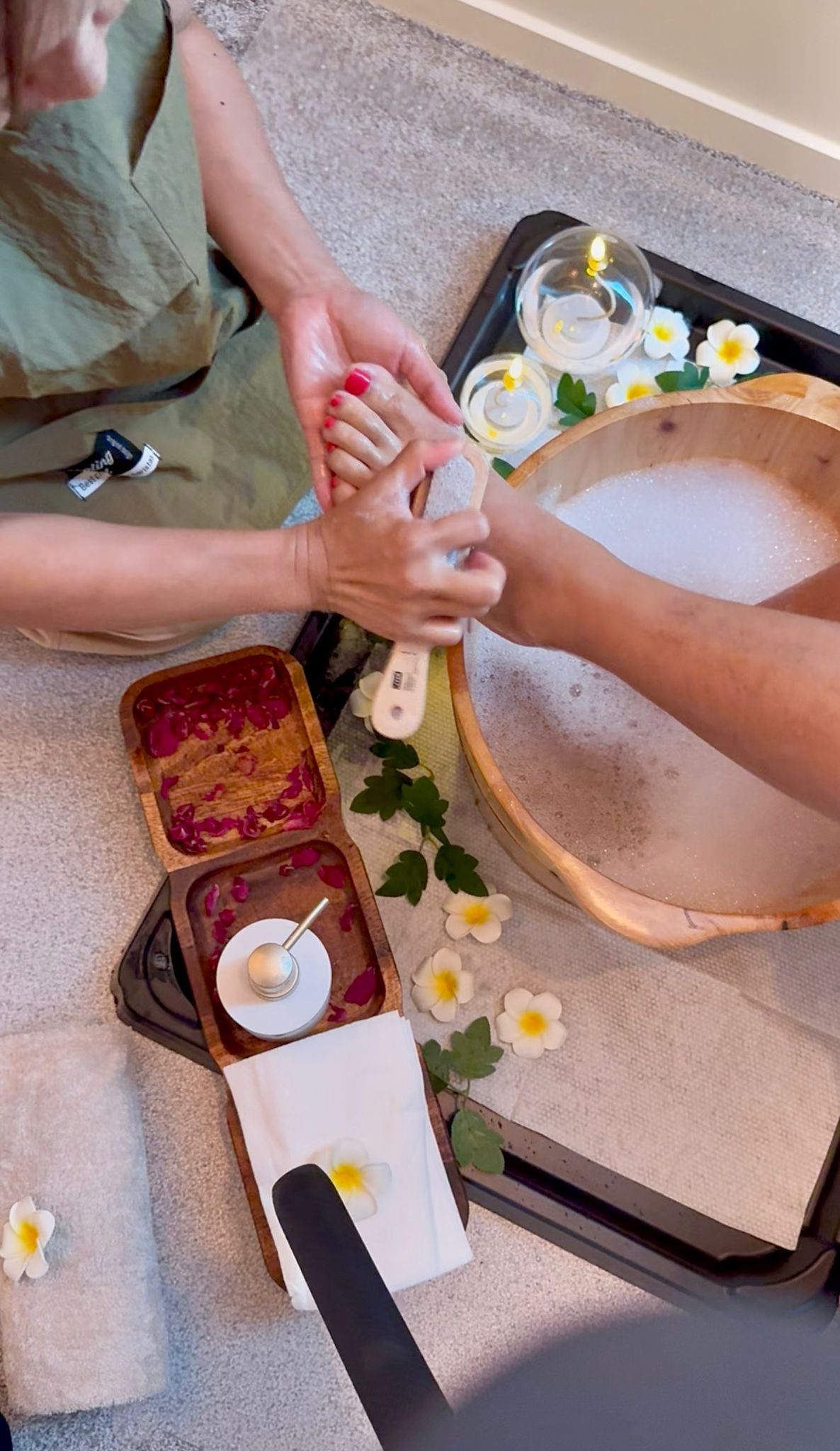 En avslappnande fotmassage är en skonsam och behaglig behandling som fokuserar på att lösa upp spänningar, minska stress och ge ny energi genom mjuka tryck och strykningar över fötterna. Behandlingen stimulerar blodcirkulationen, lugnar nervsystemet och ger en djup känsla av välbefinnande – perfekt för dig som vill varva ner och ta hand om både kropp och sinne.
